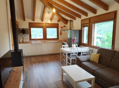 La casa dispone de calefacción y chimenea de leña, también dispone de una zona exterior con porche y un amplio jardín equipados con mobiliario, columpio para el disfrute de los niños y barbacoa. Las piscinas del pueblo se encuentran a sólo 2 minutos andando. Wifi disponible.